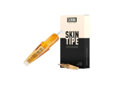 O agrupamento das agulhas de traço Skin Ink é feito por uma peça plástica desenvolvida para deixar as pontas com o mínimo espaço entre si, este gabarito que unem as agulhas de forma circular nas pontas é fabricado com peça de grau médico, reduz a solda em 80%, essa tecnologia inibe o processo de decapagem química, garantindo assim mais segurança e higiene.